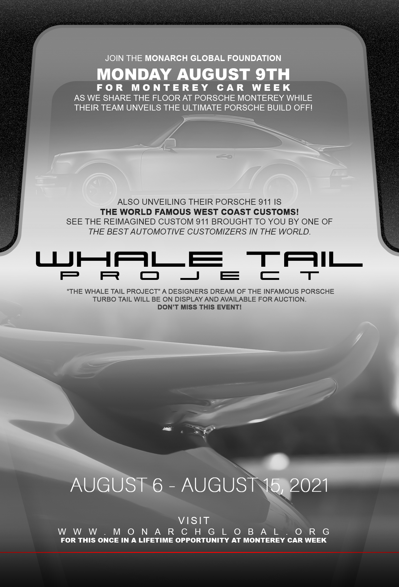 We'll be hosting an exclusive special event at Monterey Car Week (August 6-13) featuring West Coast Customs and their newest 911 Carrera. Be the first to see the amazing Whale Tail project and have the opportunity to own a piece of history.
